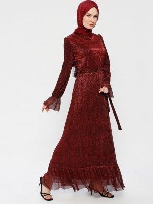 BÜRÜN Bordo Simli Elbise