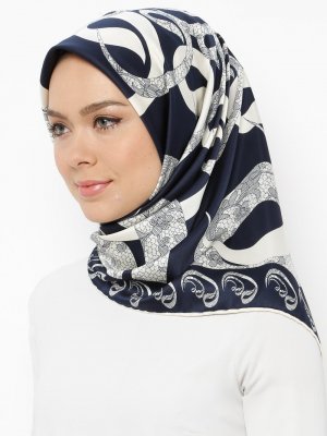 Gülsoy Lacivert Krem Desenli Rayon Eşarp