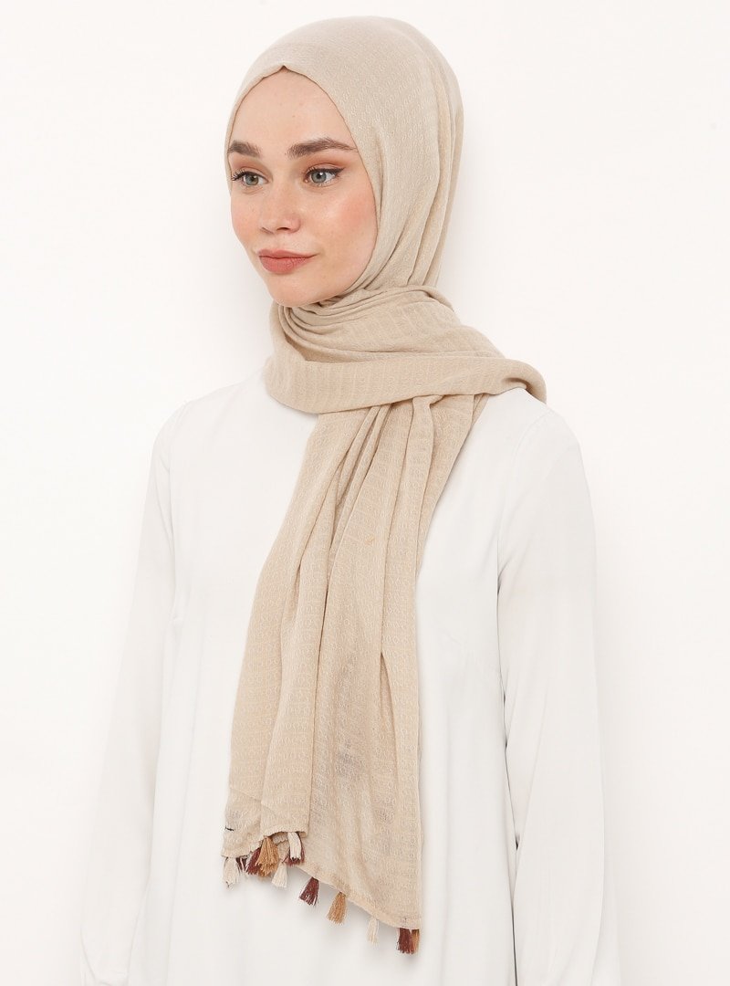 Akel Açık Vizon İnce Kare Kutu Düz Şal