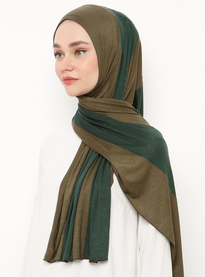 İPARHAN DUBAI Yeşil Haki Karışık Renkli Penye Şal