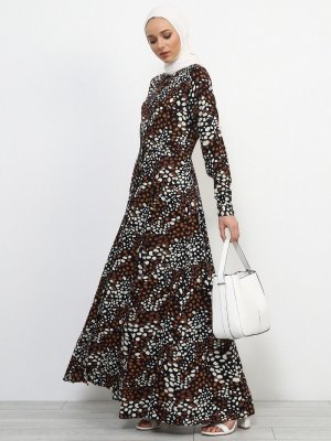 Refka Kahverengi Doğal Kumaşlı Gizli Düğmeli Elbise