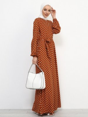 Refka Tarçın Doğal Kumaşlı Puantiyeli Elbise