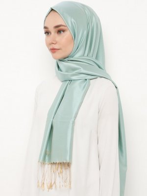 Silk Home Su Yeşili Krem Düz Renk İpek Şal
