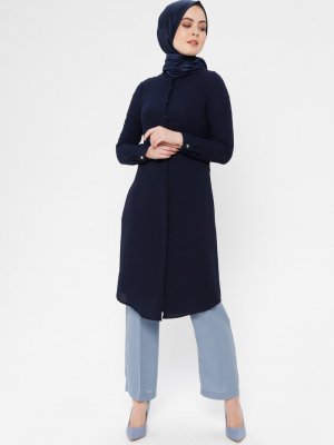 ZENANE Lacivert Gizli Düğmeli Tunik