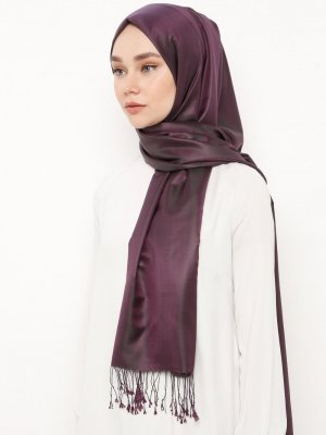 Silk Home Mürdüm Düz Renk İpek Şal