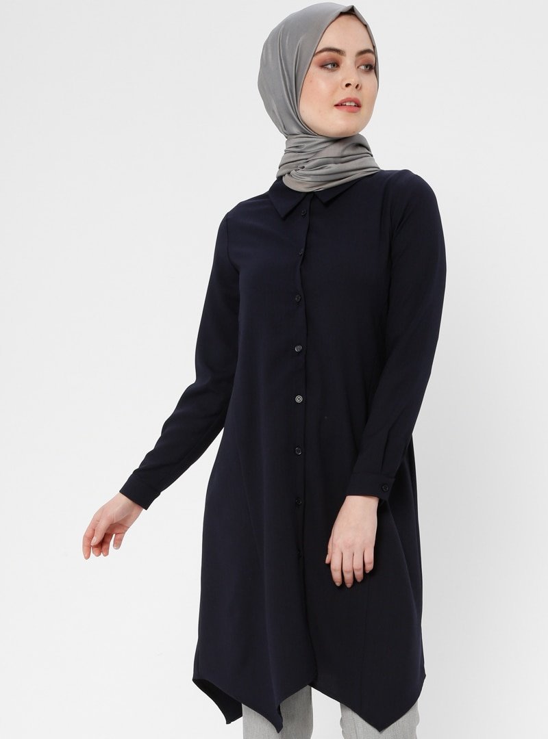 Alesya By Tuğba Lacivert Asimetrik Kesim Tunik