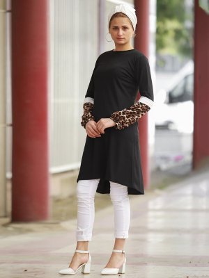 Por La Cara Siyah Leopar Desenli Tunik