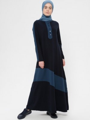 Shukr Lacivert Düğme Detaylı Spor Elbise