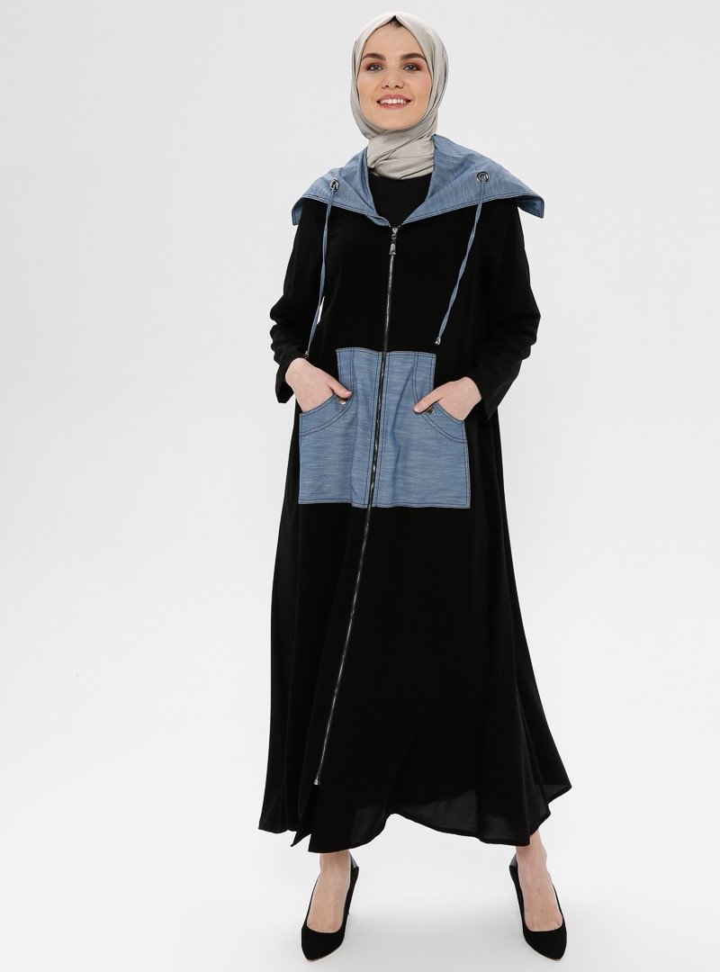 SOFMINA Siyah Mavi Fermuarlı Ferace