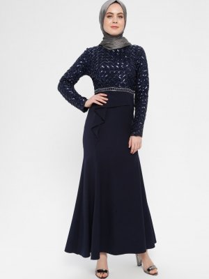 BÜRÜN Lacivert Payetli Abiye Elbise