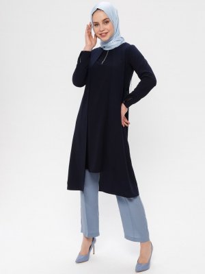 Alesya By Tuğba Lacivert Fermuar Detaylı Tunik