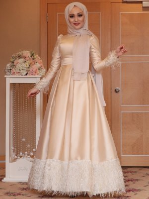 My Dreams Collection Ekru Gardenya Prenses Abiye Elbise