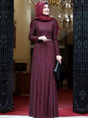 Amine Hüma Bordo Orkide Abiye Elbise
