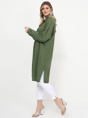 Alia Soft Haki Doğal Kumaşlı Fırfır Detaylı Tunik