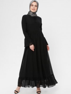 BÜRÜN Siyah Şifon Detaylı Elbise