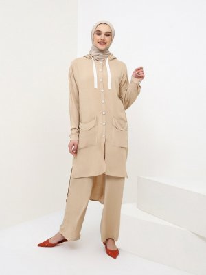 Benin Bej Doğal Kumaşlı Tunik&Pantolon İkili Takım