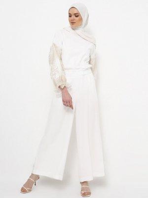 Rabia Z X Modanisa Ekru Doğal Kumaşlı Işıltılı Kol Detaylı Tunik