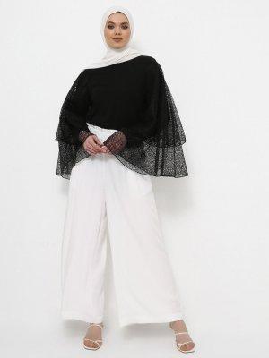 Rabia Z X Modanisa Siyah Doğal Kumaşlı Dantelli İspanyol Kollu Tunik
