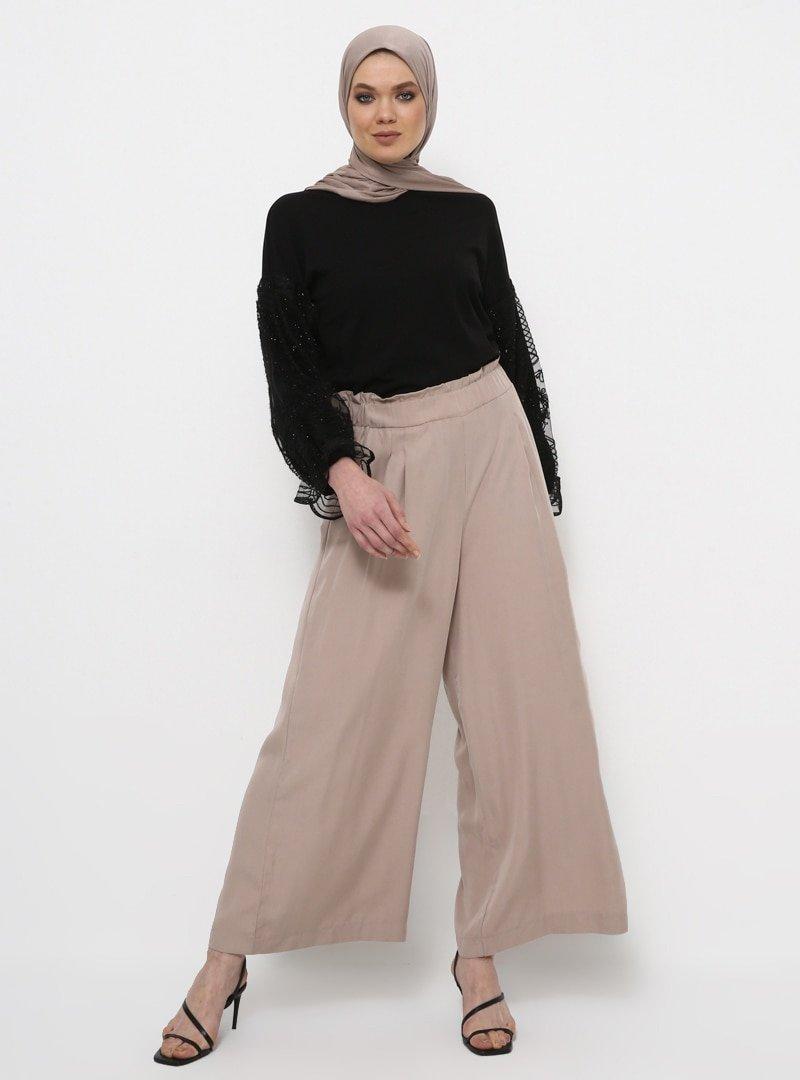 Rabia Z X Modanisa Siyah Doğal Kumaşlı Işıltılı Kol Detaylı Tunik