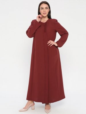 TUĞBA Bordo Gizli Düğmeli Pardesü