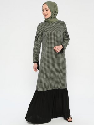 Ginezza Haki Nakış Detaylı Garnili Elbise