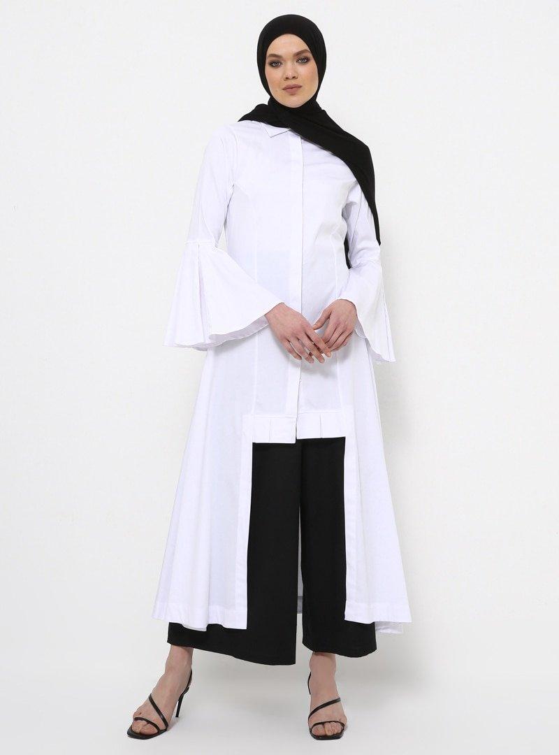Rabia Z X Modanisa Beyaz Doğal Kumaşlı Asimetrik Kesim Tunik