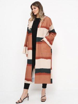 Alia Kiremit Haki Batik Desenli Kapüşonlu Kap