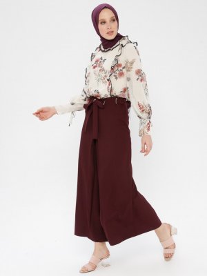 BÜRÜN Bordo Geniş Paça Pantolon Etek