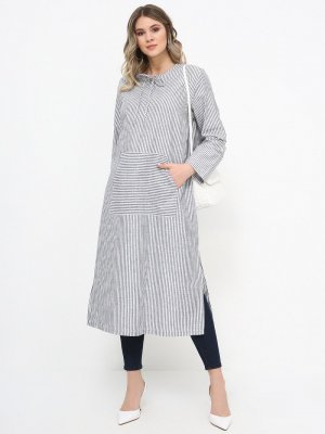 Alia Antrasit Doğal Kumaşlı Simli Tunik