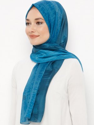 Renkli Butik Mavi Desenli Pamuklu Şal