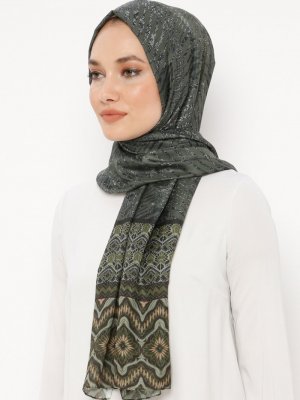 Renkli Butik Haki Desenli Pamuklu Şal