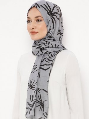 Renkli Butik Gri Desenli Pamuklu Şal