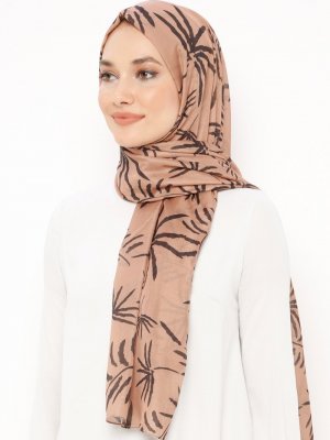 Renkli Butik Sütlü Kahve Desenli Pamuklu Şal