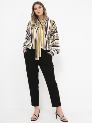 Alia Yağ Yeşili Gizli Düğmeli Yakası Bağcıklı Tunik