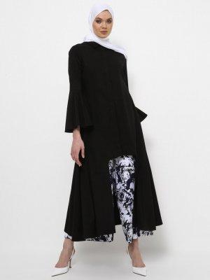 Rabia Z X Modanisa Siyah Doğal Kumaşlı Asimetrik Kesim Tunik