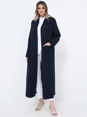 Alia Lacivert Kapüşonlu Pardesü