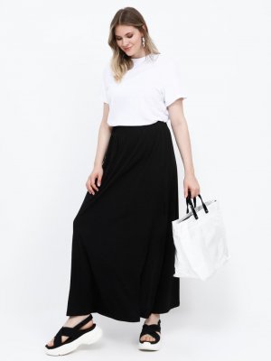 Alia Siyah Doğal Kumaşlı Beli Lastikli Etek