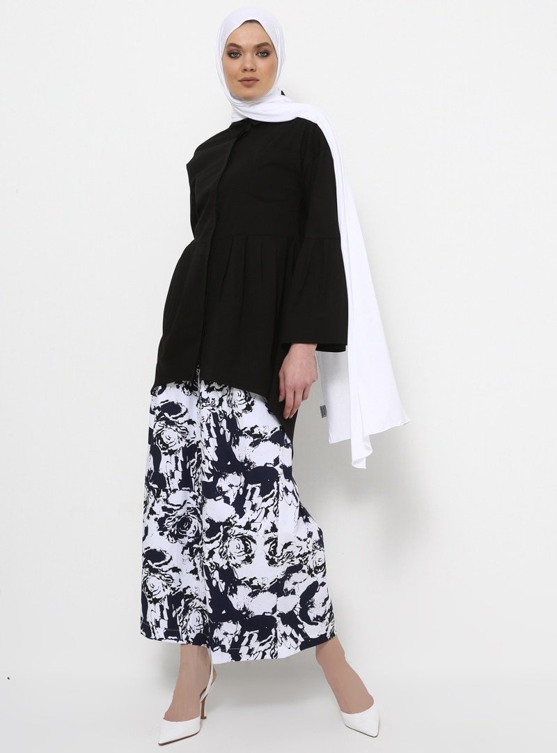 Rabia Z X Modanisa Siyah Doğal Kumaşlı Asimetrik Kesim Tunik