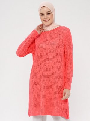 Zentoni Mercan Triko Ajurlu Kalın Tunik