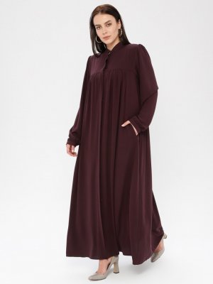 ŞAHİN FERACE Mürdüm Gizli Düğme Detaylı Ferace