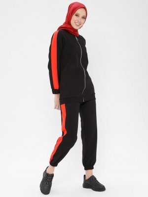 PİLİSE Siyah Kırmızı Şeritli Eşofman Takım