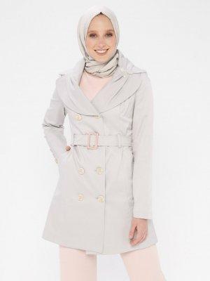 BUTİK VEDAT Buz Mavisi Yaka Detaylı Trençkot