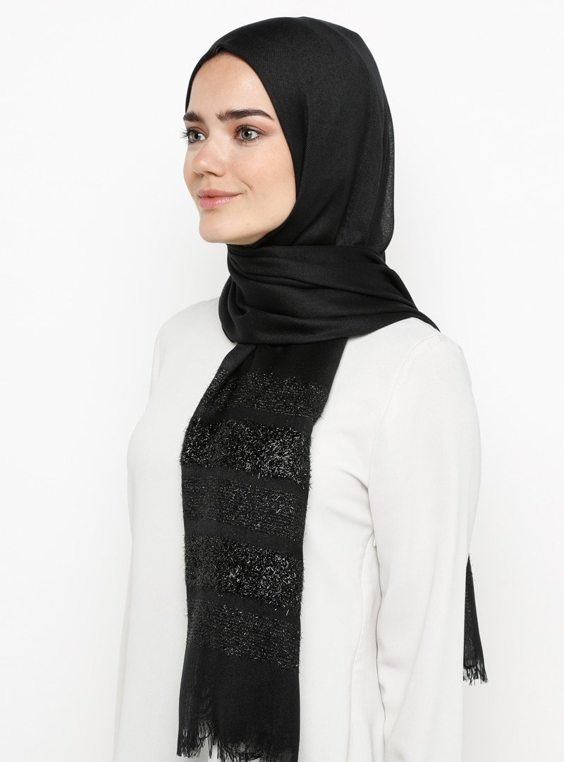 Mervin Şal Siyah Simli Paşmina Çavuş Desen Şal