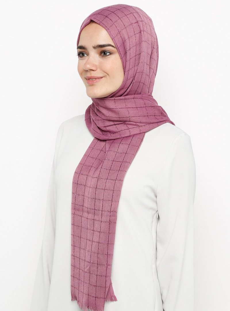 Mervin Şal Pembe Simli Paşmina Kare Desen Şal