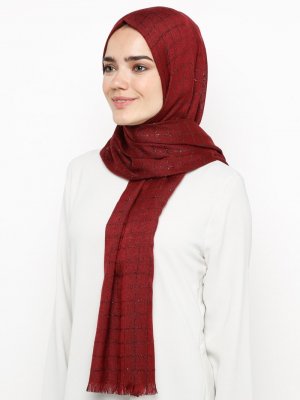 Mervin Şal Bordo Simli Paşmina Kare Desen Şal