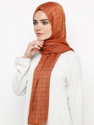 Mervin Şal Kiremit Simli Paşmina Kare Desen Şal