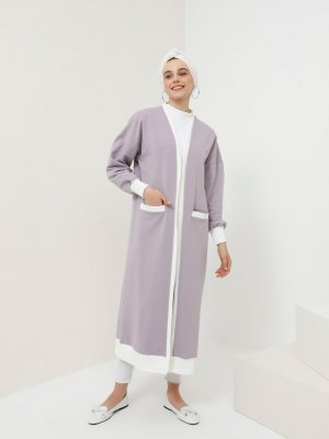 Benin Leylak Ribana Detaylı Cepli Hırka