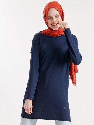 PLİSTRE Lacivert Doğal Kumaş Basic Tunik