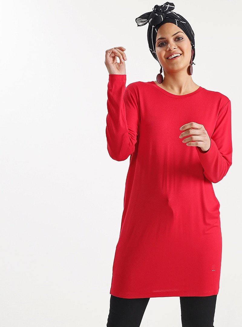 PLİSTRE Kırmızı Doğal Kumaş Basic Tunik