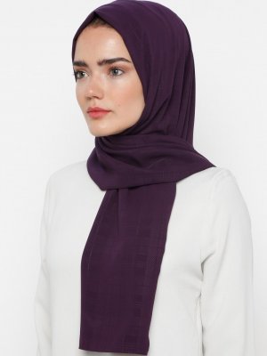 Balse Eşarp Mürdüm Medine İpeği Ekose Desen Şal
